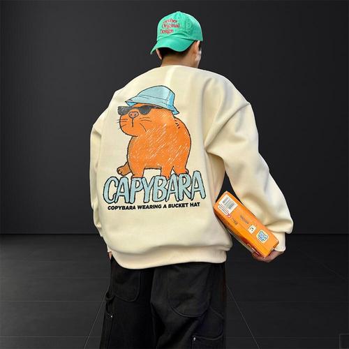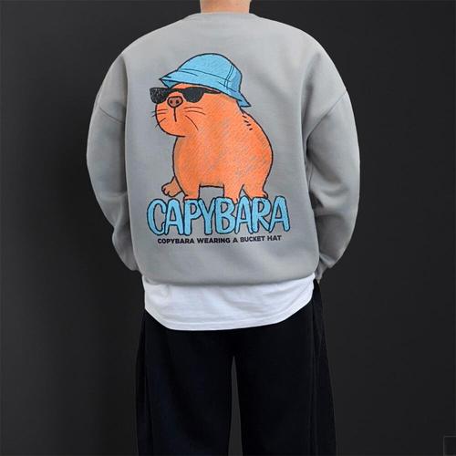 [노멀쉐이크]히터스 합포 기모 카피바라 백프린팅 오버핏 맨투맨 (3color) 스트릿 캐주얼