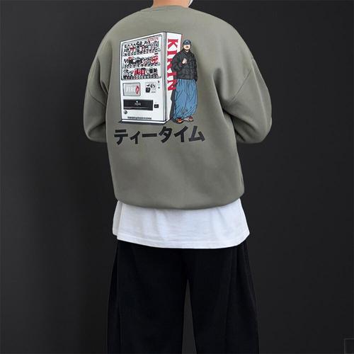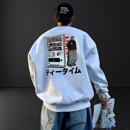 Izeriel 가을 겨울 두꺼운 오버핏 프린팅 맨투맨 양기모 커플용 양털 맨투맨 남녀공용 오버핏 보온 맨투맨