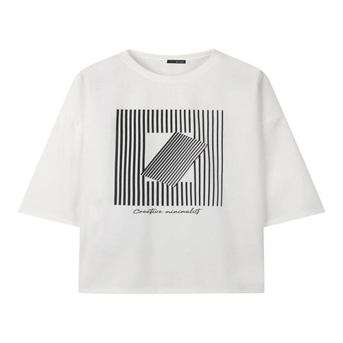 [보니스팍스]데일리 스퀘어 프린팅 7부 반팔티셔츠 (XQ1LW002L0)