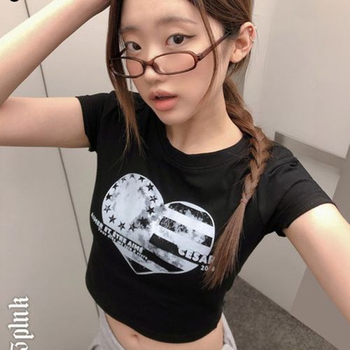 더핑크 / 미고 하트 성조기 프린팅 크롭 반팔티