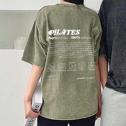 빈티지 워싱 필라테스 프린팅 반팔티 오버핏 티셔츠 WFJFYNU