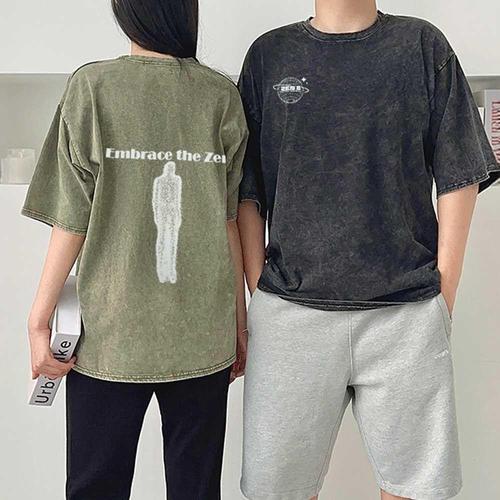 빈티지 워싱 백 프린팅 오버핏 반팔티 데일리룩 WFJFYNV