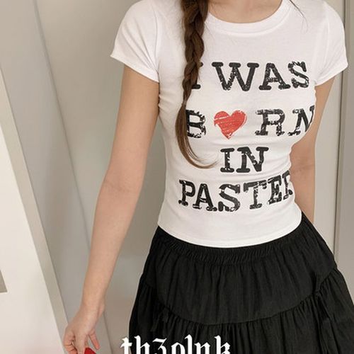 더핑크 / 시롭 슬림핏 빈티지 크랙 하트 레터링 프린팅 반팔티