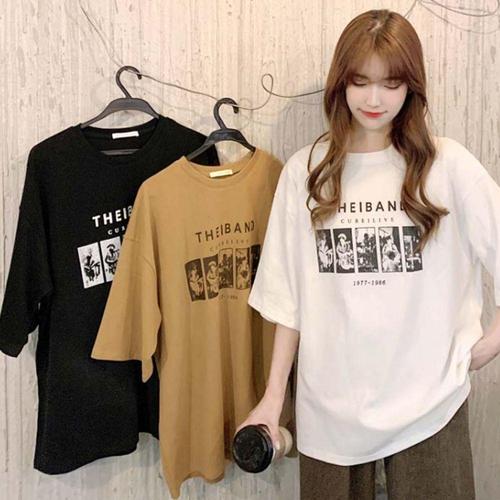 여자 여름 무지 프린팅 티셔츠 오버핏 여름 패션 반팔티 WFIXM8E