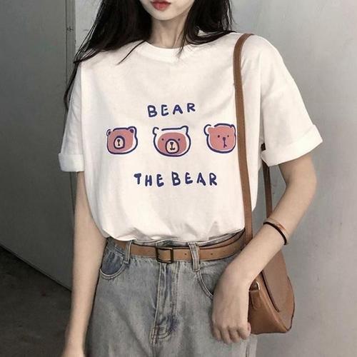[라일리여성의류] Rly 반팔티 프린팅 레터링 곰돌이 루즈핏 여자 빈티지