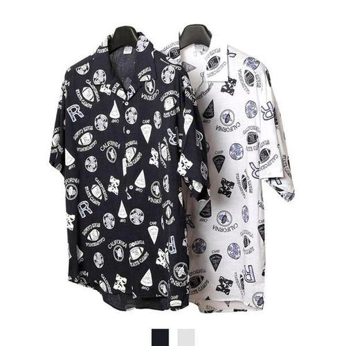 [에이치플러스몰]자이언트 프린팅 오픈카라 반팔셔츠