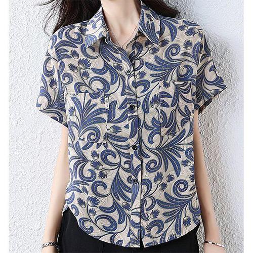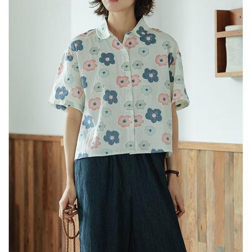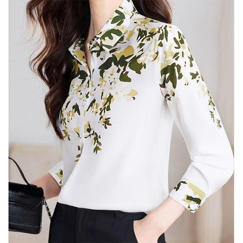 [패션시그널]꽃잎프린팅 둥근카라넥 셔츠블라우스 A2963D
