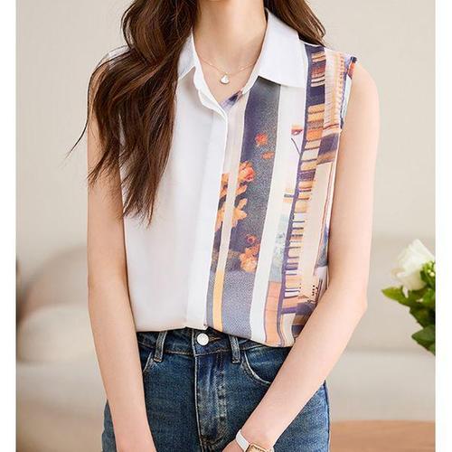 [패션시그널]하프프린팅 민소매 셔츠블라우스 33BCC2