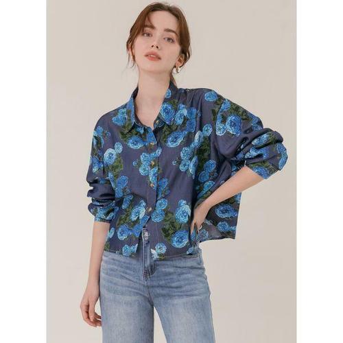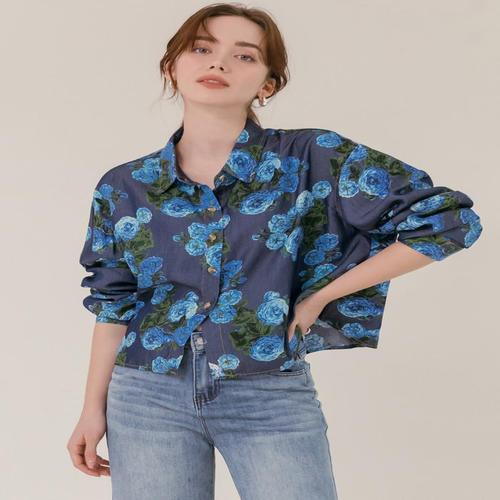 [막스까르띠지오]로지 프린팅 크롭 데님 셔츠
