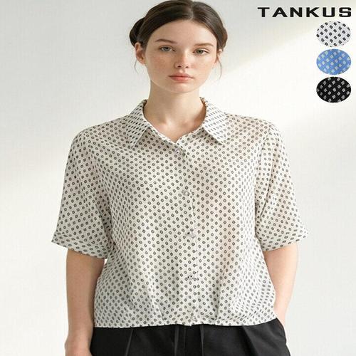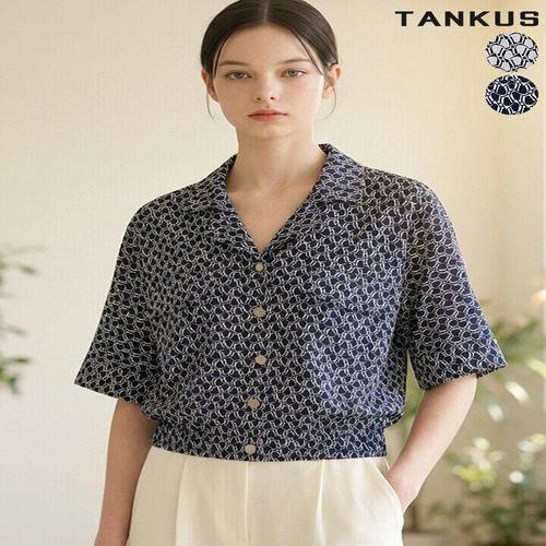[탱커스]여성 기하학 프린팅 카라 숏 반팔 셔츠