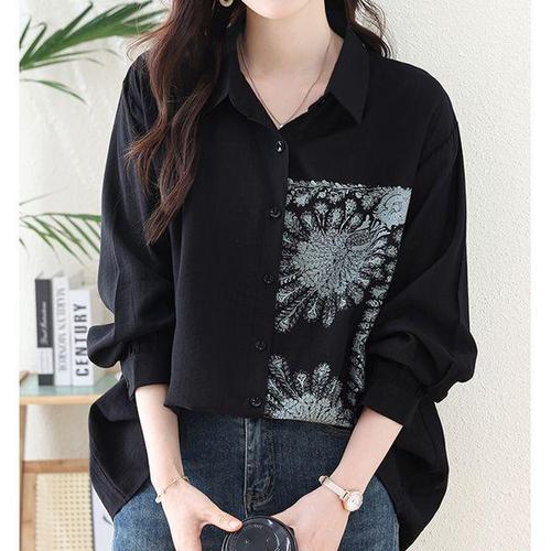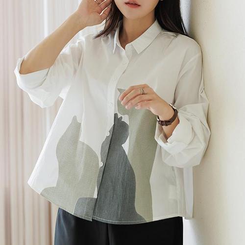 [패션시그널]루즈핏 픽쳐프린팅 셔츠넥 블라우스 3B06AE