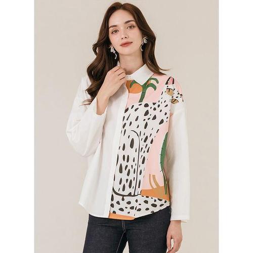 [막스까르띠지오]하프 캣츠 프린팅 루즈핏 셔츠