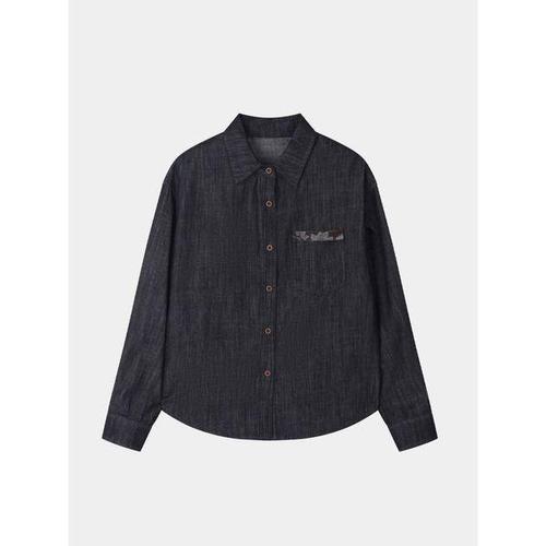 [요하넥스]소매프린팅 데님셔츠 블라우스