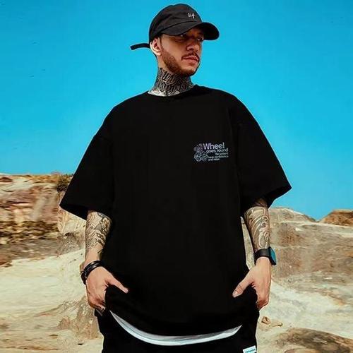 남자 캐주얼 힙스티즈 프린팅 면 반팔 티셔츠 AC-TSH-Q071-블랙