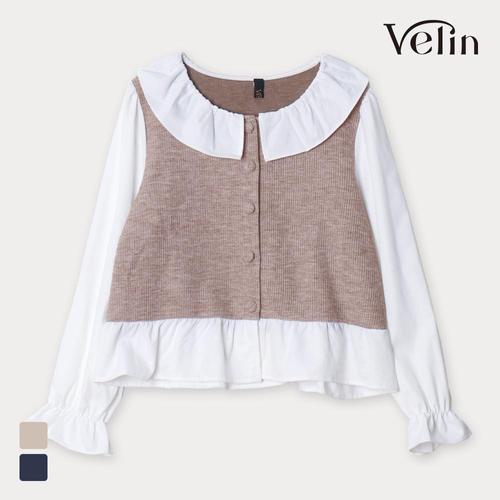 벨린 일리 니트 블라우스 프릴 카라 탑