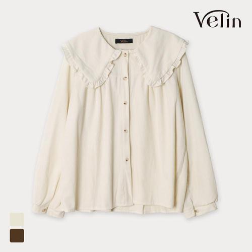 [옷자락] 여성 러블리 코튼 프릴 코듀로이 빅카라넥 블라우스