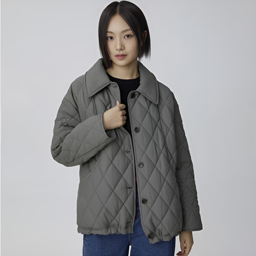 2025년 봄 신상 여성 빈티지 크루넥 퀼팅 코튼 패딩 루즈핏 퀼팅 캐주얼 재킷
