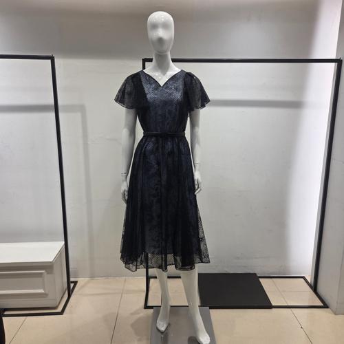 비비에모 프리미엄 플라워 레이스 하이넥 미디 원피스 03003