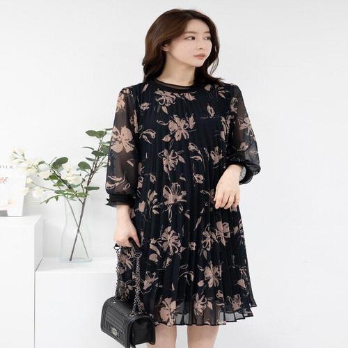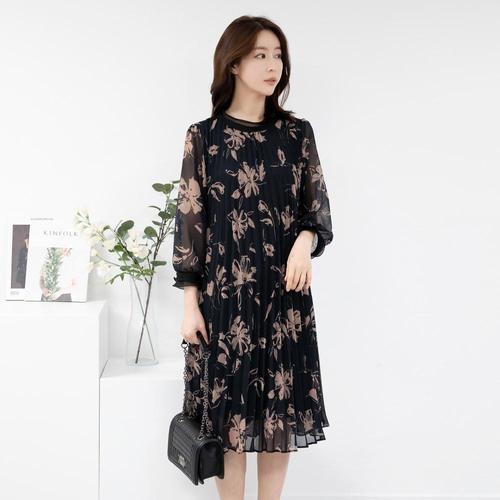 엄마옷 플라워 쉬폰 플리츠 원피스 613BNM281 중년여성/50대/60대/마담/빅사이즈/할머니옷