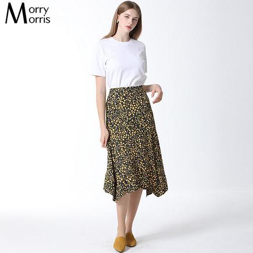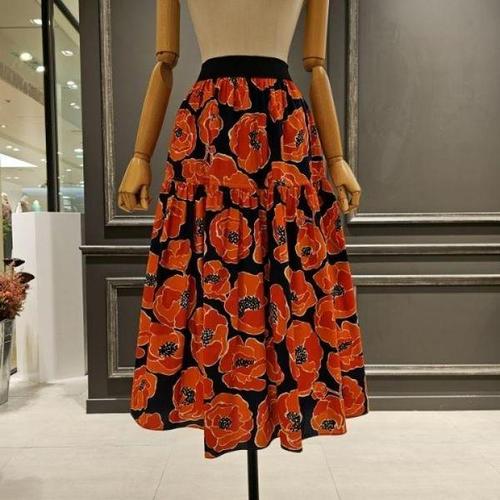 HARANG 꽃무늬 스커트 봄 가을 플로럴 여성 A라인 플레어 미디 치마