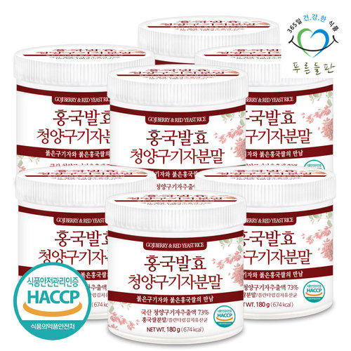 [푸른들판] 홍국 발효 구기자 분말 가루 180gx7통 청양구기자 추출물 홍국균 유산균 함유
