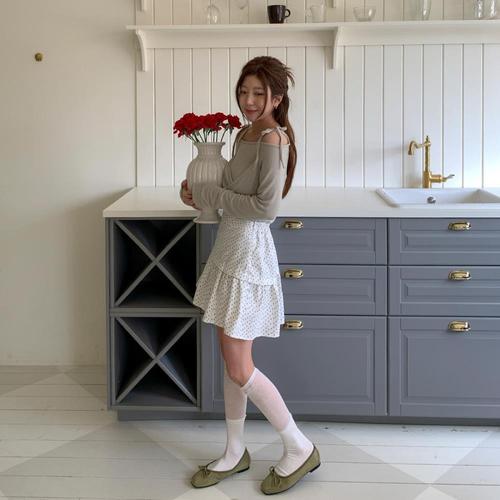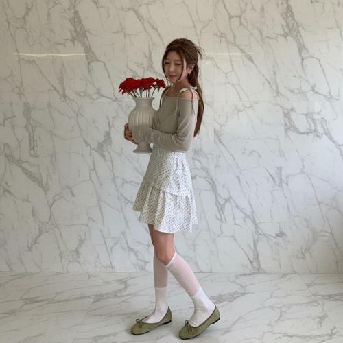 [옷자락]여자 잔꽃 셔링 플레어 미니 스커트