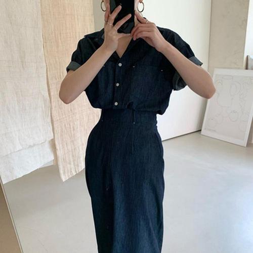 미니원피스 브이넥 원피스 버튼 플레어스커트 심플 니