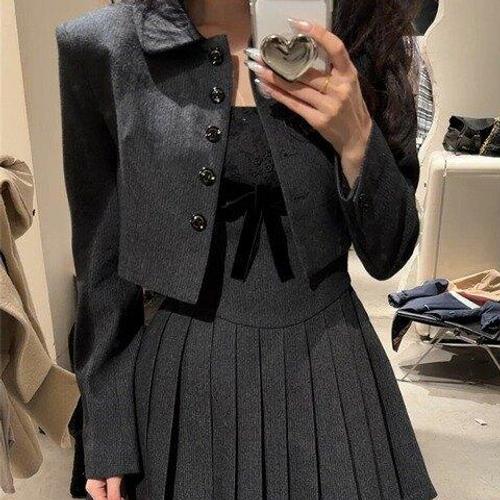 [아리엘스타일]크롭자켓 플리츠 원피스세트 앤드류원피스세트