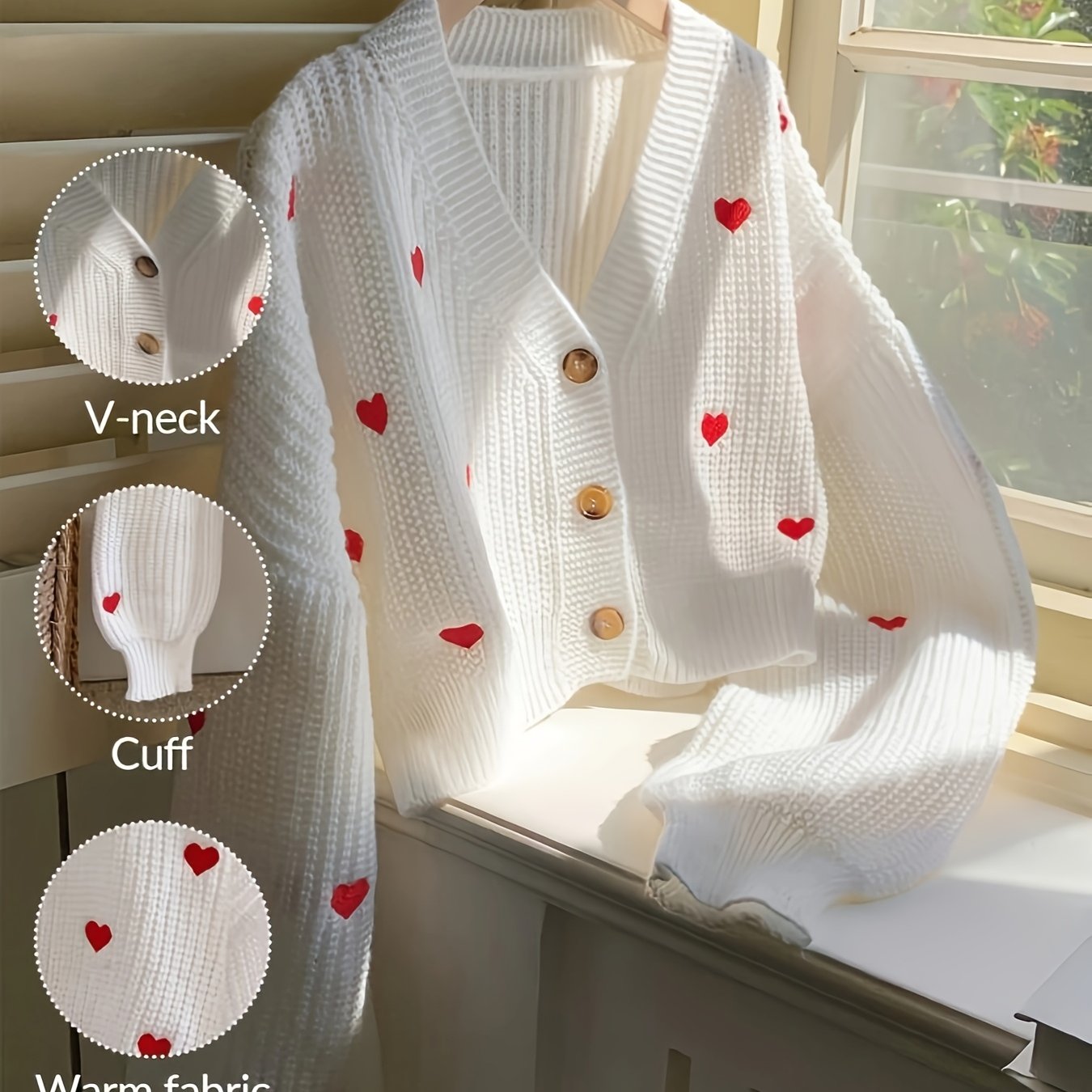 TEMU 여성용 캐주얼 하트 패턴 오버사이즈 숄더 롱 슬리브 가디건 탑 가을/겨울 발렌타인데이
