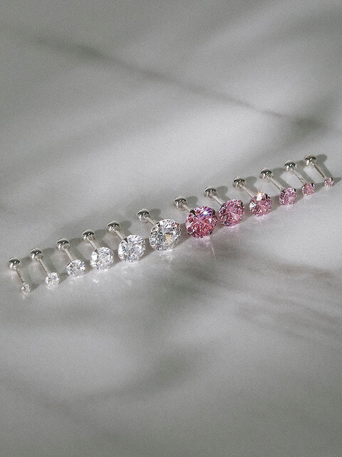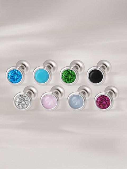 [쥬넬] (1+1)Silver925 컷팅 컬러 큐빅 피어싱(8 color)