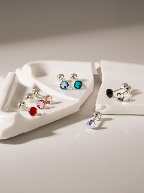 [쥬넬] (1+1)Silver925 미니미 컬러 큐빅 우물 은 피어싱(8 color/3 size)