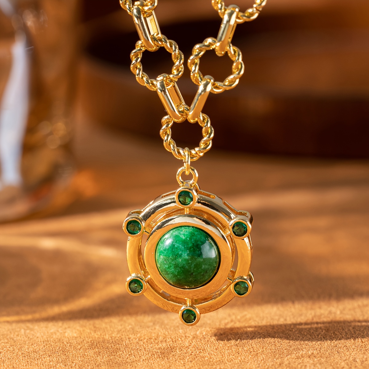 TEMU 빈티지 14K 금도금 구리 펜던트 목걸이, 천연 아게이트 보석 장식 - 데일리 및 선물 행사, 캠퍼스 휴일 착용 가능한 다재다능한 남녀 공용 액세서리