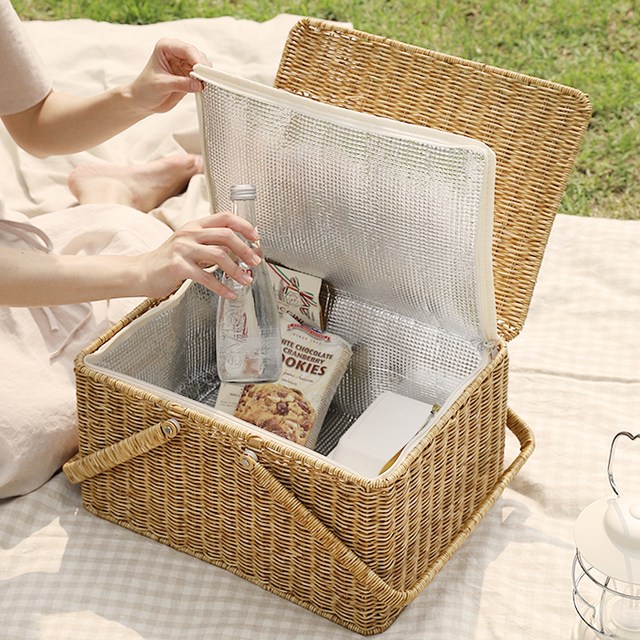 [골드스마일]라탄 피크닉 바구니 대형 캠핑용 바스켓 야외 나들이 소품함