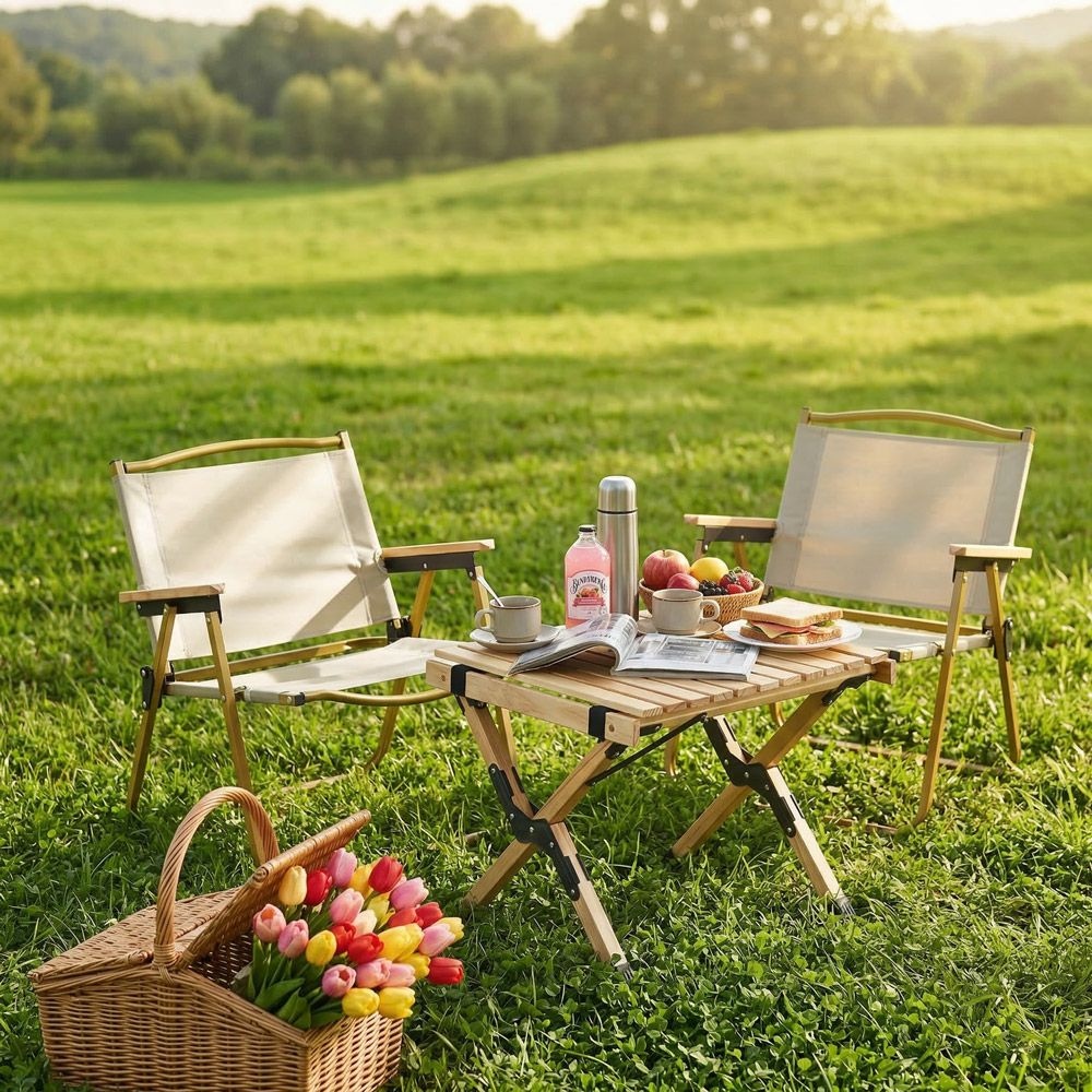 피크닉 접이식 우드 테이블 + 의자 2개 SET