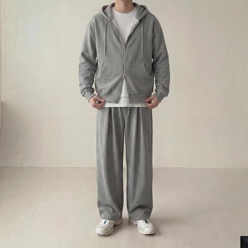 [노멀쉐이크]골지 투웨이 후드집업 밴딩 핀턱 트레이닝 세트 2color