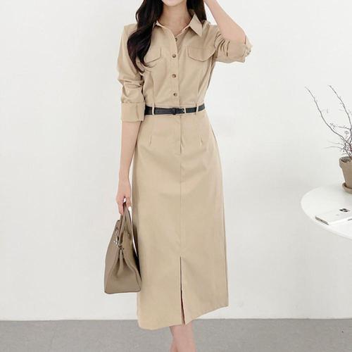 [옷자락] 여자 하객룩 데이트룩 우아한 슬림핏 셔츠 원피스