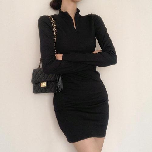 [굿쇼핑몰_의류]반집업 캐주얼 골지 니트 슬림핏 긴팔 미니 원피스