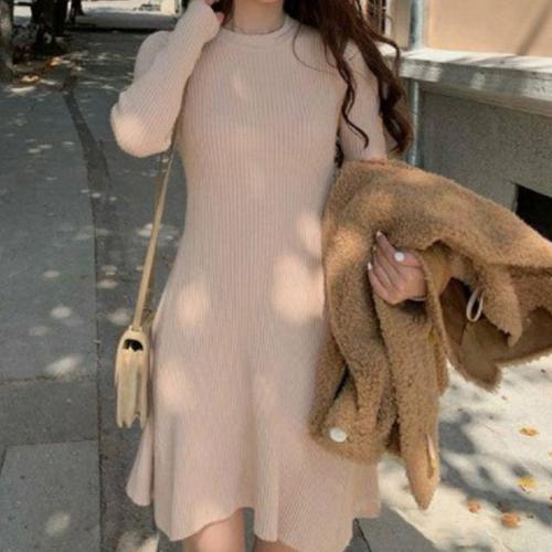 [굿쇼핑몰_의류]슬림핏 페미닌 골지 니트 긴팔 미디 롱 원피스