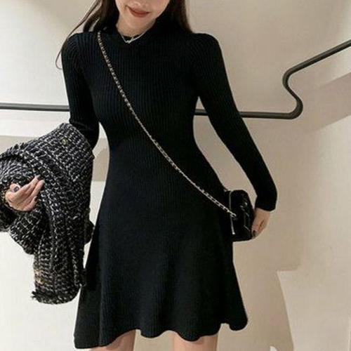 M1 여친 원피스 스커트 니트 미디 여름 폴라 슬림핏 솔리드 힙업 긴팔 JEN2