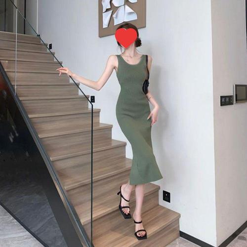 M1 원피스 니트 치마 여자 여름 홀터넥 프렌치 슬림핏 A라인 JEN2