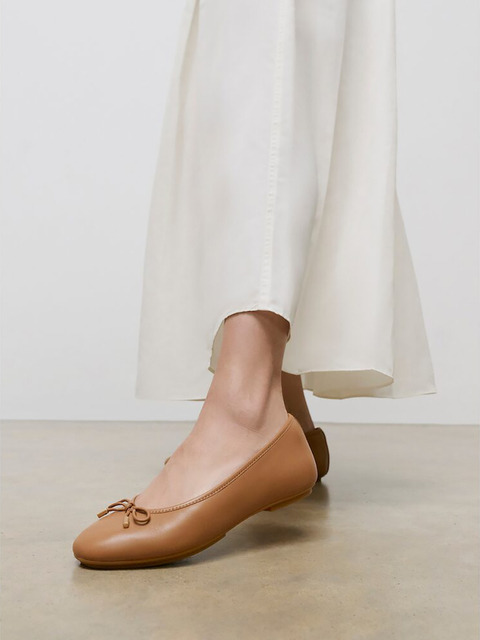 [핏플랍] [삼성물산공식] [델리카토] 여성 리본 소프트 레더 발레리나 플랫슈즈 - 데저트 탄 (FT59K2M10C)