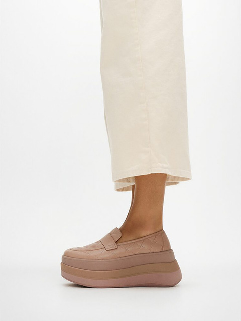 [핏플랍] [삼성물산공식] [F모드] 여성 스택 퀼티드 레더 로퍼 - 클래식 베이지 (FT59K2L09A)