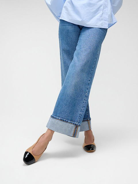 [핏플랍] [삼성물산공식] 여성 캡 토 레더 발레리나 플랫슈즈 - 카멜/블랙 (FT59K2M07C)