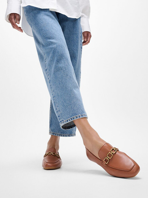 [핏플랍] [삼성물산공식] [델리카토] 여성 스퀘어 체인 소프트 레더 로퍼 - 딥 탄 (FT59K2L04C)