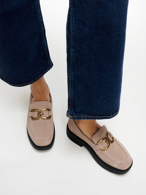 [핏플랍] [삼성물산공식] [F루마] 여성 스퀘어 체인 스웨이드 웨지 로퍼 - 클래식 베이지 (FT59K2L08A)