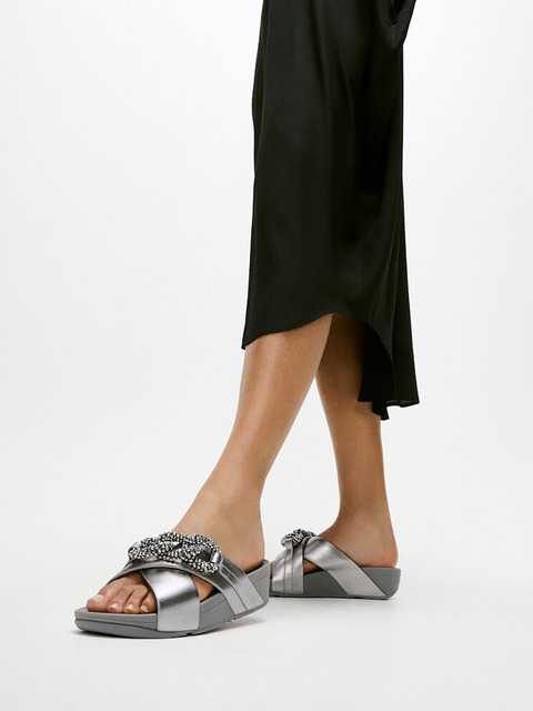 [핏플랍(삼성물산)] [FITFLOP] [삼성물산공식] [루루] 여성 비즈 체인 레더 크로스 슬라이드 실버린 (FT59K2D012)