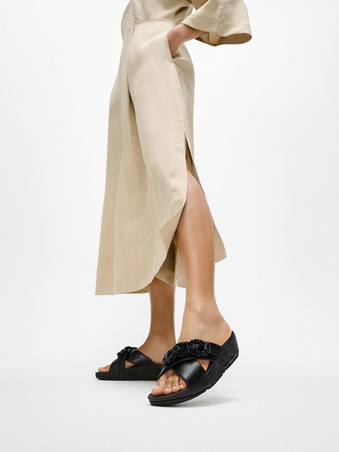[핏플랍][삼성물산공식]여성 비즈 체인 레더 크로스 슬라이드 블랙 (FT59K2D015)