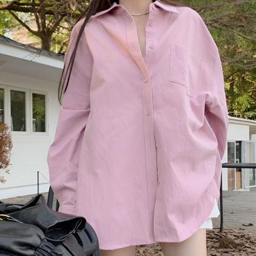 [에이치플러스몰]핑키 오버핏 베이직 숙 JSC2024050802 겨울 여성 남방 롱숙 오버핏 블라우스 롱