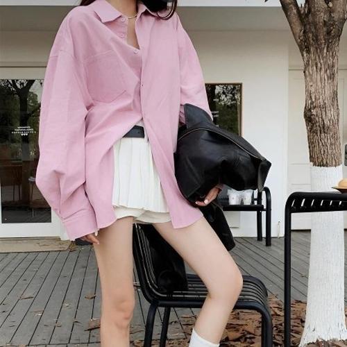 [에이치플러스몰]오버핏 인기 핑키 베이직 셔츠