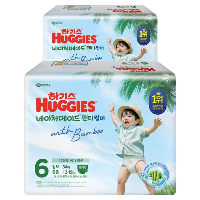 하기스 2026 네이처메이드 썸머 팬티형 공용 6단계 34매X2팩